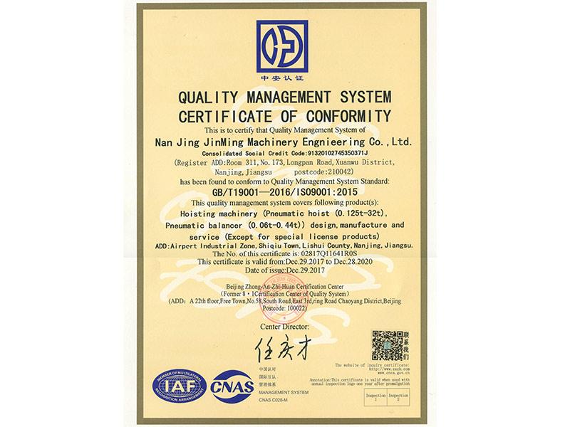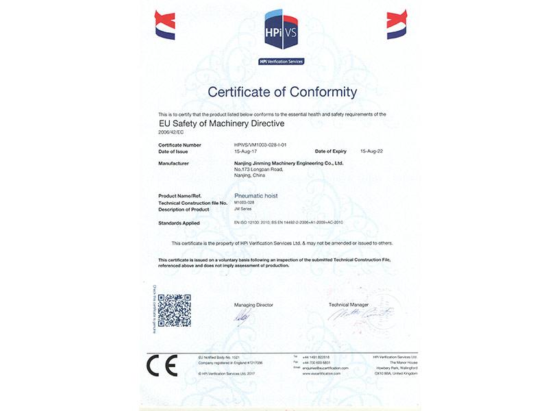 • 氣動葫蘆CE證書