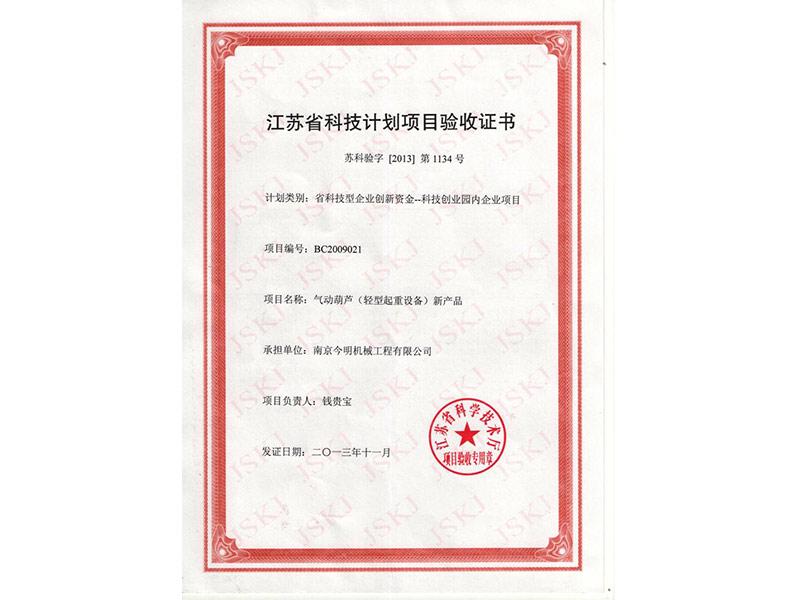 • 江蘇省科技計劃項目驗收證書